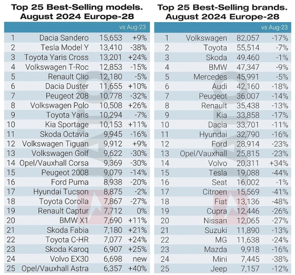 Далее приводим статистику JATO Dynamics за август по самым популярным маркам и моделям.